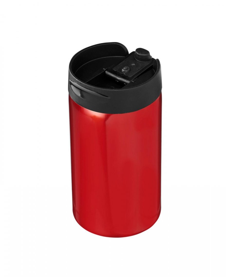 Capacité 250 ml. Double paroi sous vide. Couvercle rabattable étanche. Intérieur et extérieur en acier inoxydable. Coloris : rouge. Marquage laser compris. Poids : 270 g. Dimensions : Ø 7 x 13,2 cm.