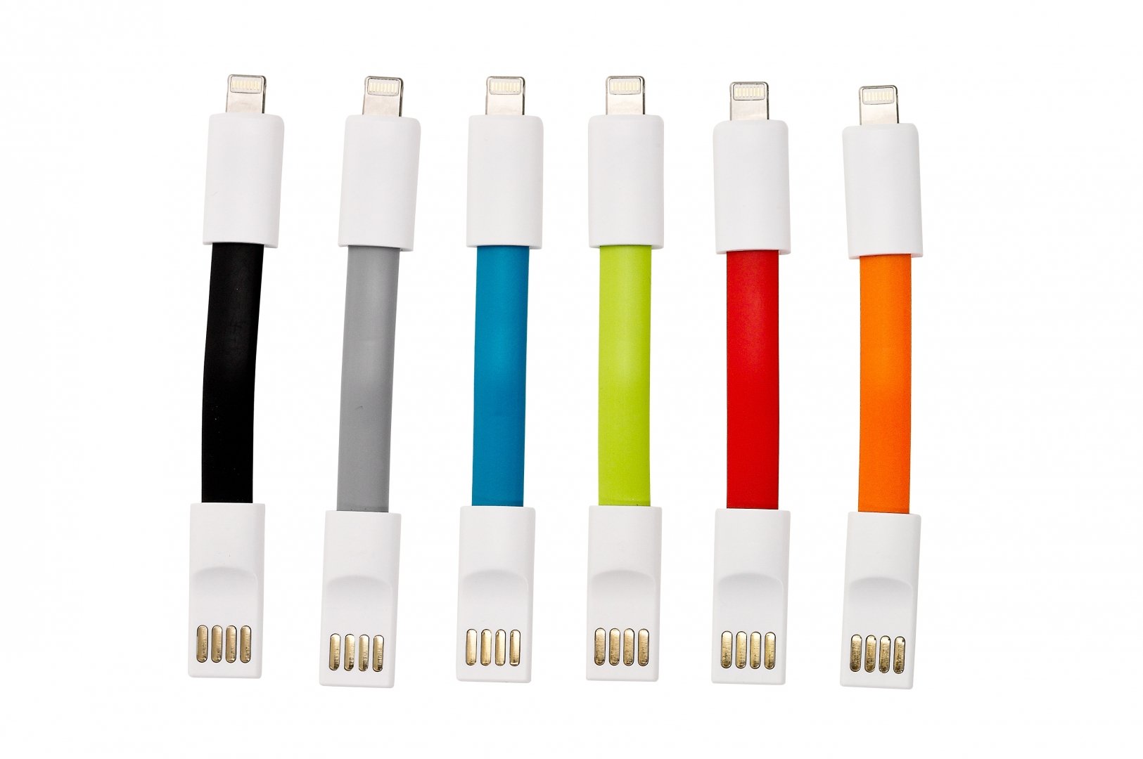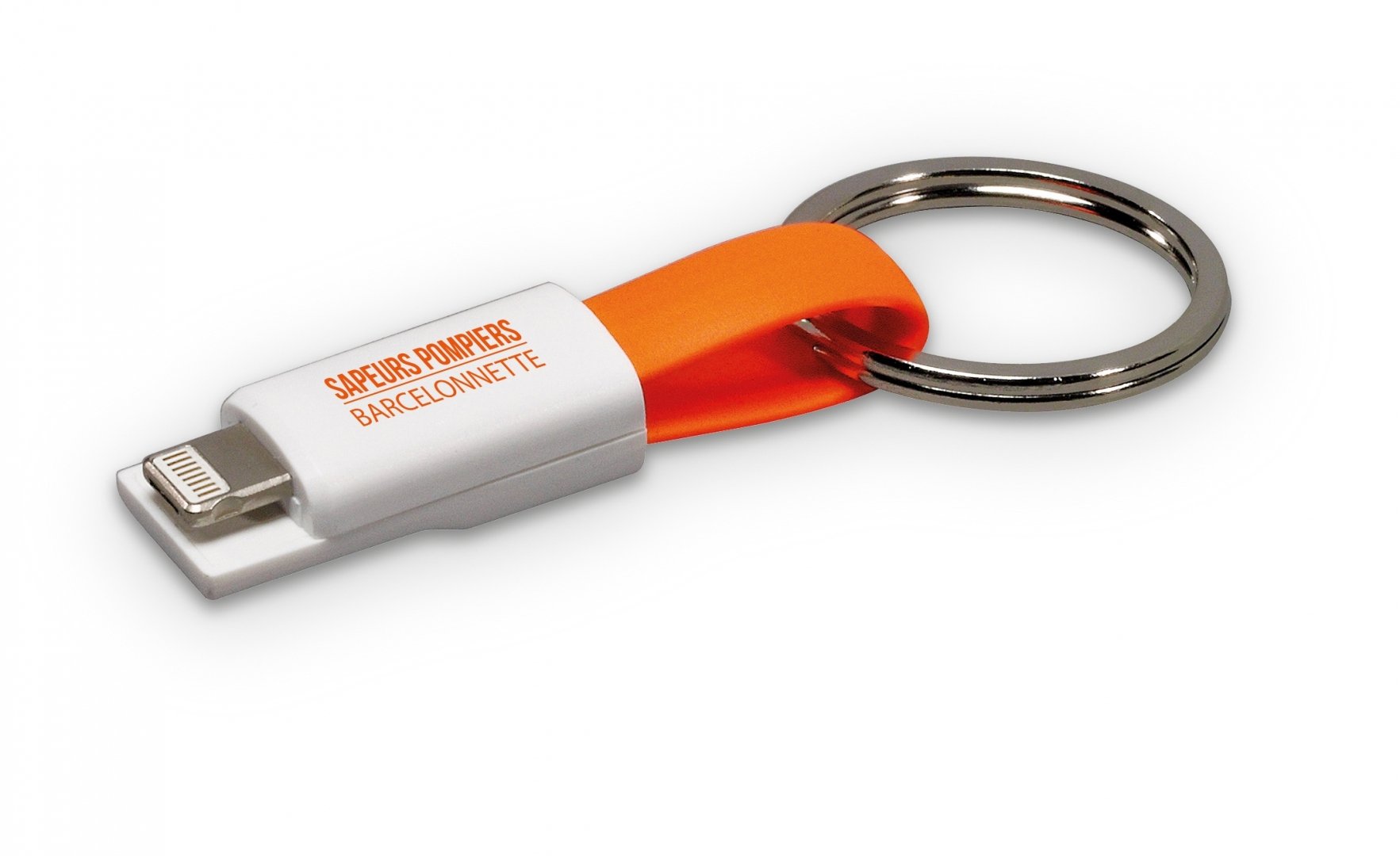 Équipé d'un câble de chargement. Câble de charge dual compatible Android, IOS. Livré sous blister. Possibilité de personnaliser également la cartonnette de présentation du produit. Marquage 1 couleur compris. Poids : 14 g. Dimensions : 5 x 1,2 cm plus anneau 2,7 cm.