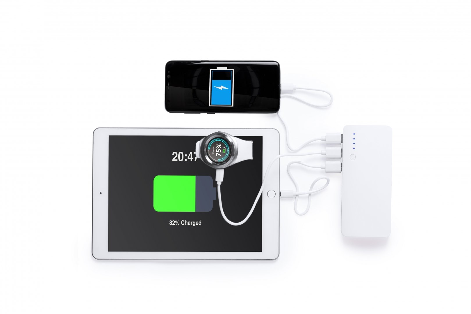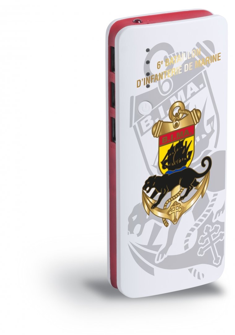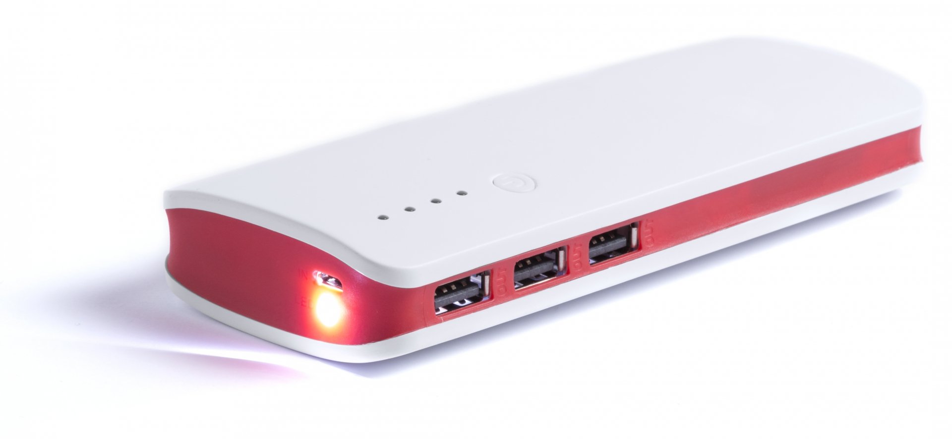 Comprenant 3 sorties USB pour une capacité de 1000 mAh. Forme incurvée avec corps blanc et contour en couleur. Câble USB non inclus. Existe en 5 coloris. Livré en boîte cartonnée. Marquage digital compris. Poids : 270 g. Dimensions : 6,5 x 14,3 x 2,2 cm.