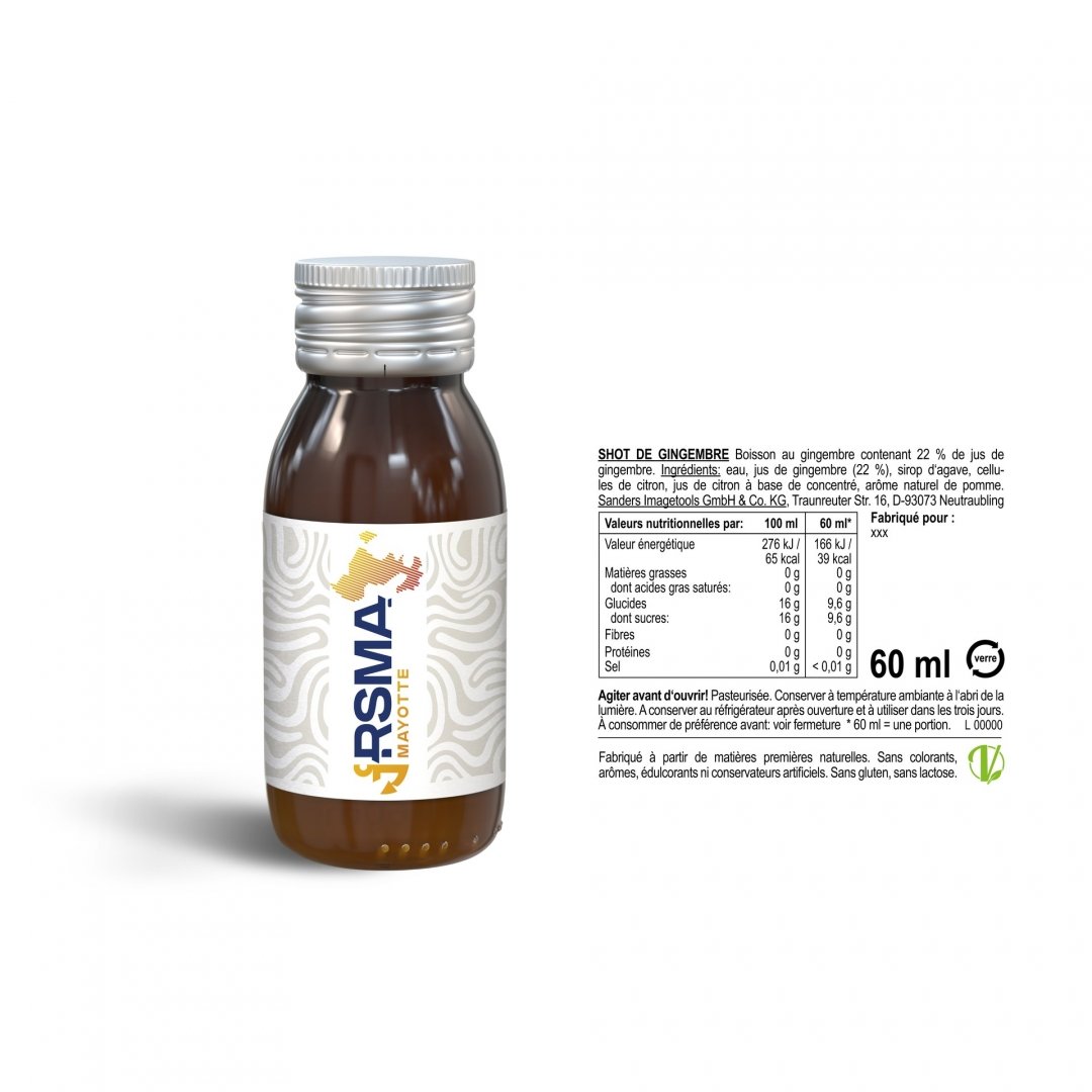 Il contient 22 % de jus de gingembre, est légèrement sucré avec du sirop d'agave et complété par des cellules de citron frais. Recette naturelle sans additifs artificiels : le Ginger Shot est végétalien, sans conservateurs, sans gluten et sans lactose. Il ne contient pas de colorants, d'arômes ou d'édulcorants artificiels. Marquage quadri compris. Poids : 130 g. Dimensions : 3,9 x 3,9 x 9,7 cm.