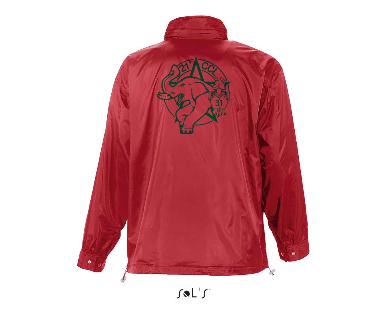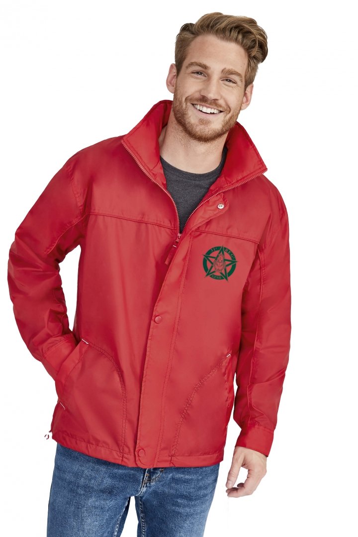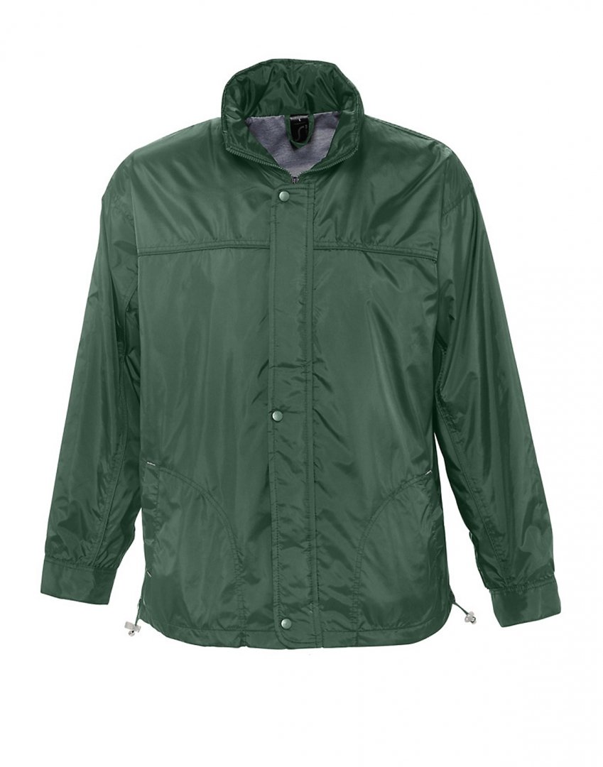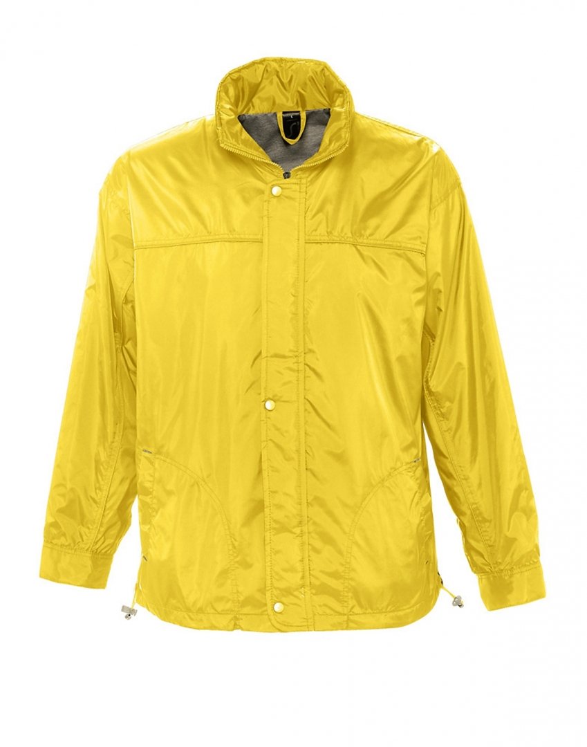 100 % nylon imperméable, doublure jersey 100 % polyester. Ouverture avec patte, zip et boutons-pression, poignets ajustables par patte et velcro, poches, capuche, oeillets d'aération. Existe en 6 coloris. Marquage une couleur, une position compris. Densité : 210 g/m². Tailles : S à XXL.