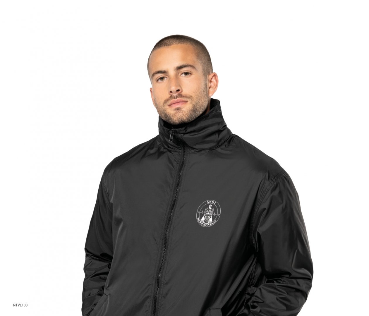 100% polyamide 210 T avec enduction acrylique. Fermeture zippée. 1 poche intérieure + 2 poches devant. Cordon élastique au bas du vêtement avec stoppeurs. Capuche dans le col avec cordon élastique. Doublure jersey gris chiné 100% polyester. Existe en 8 couleurs. Marquage une couleur, une position compris. Densité : 100 % polyamide 210 T. Dimensions : S à 4 XL.