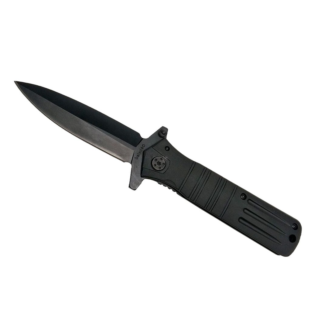 Lame en acier inoxydable noircie, manche en acier inoxydable et en aluminium de couleur noire, cran de sécurité. Marquage laser compris. Poids : 111 g. Dimensions fermées : 11,4 x 4,4 x 1,5 cm.