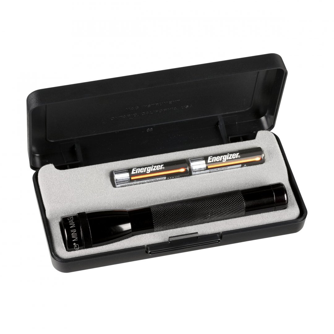Mag-Lite légère (113 g avec piles). Peut fonctionner jusqu'à 5 h30 avec 2 piles. Avec ampoule de rechange et piles. Existe en 4 coloris. Livrée en coffret individuel. Marquage laser compris. Poids : 207 g. Dimensions : 16,5 x 7,80 x 2.5 cm.