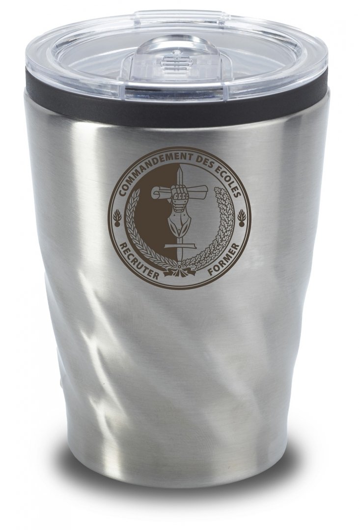 Double paroi avec extérieur en acier inoxydable brossé et intérieur en plastique. Couvercle étanche. Contenance 300 ml. Ne convient ni au lave-vaisselle ni au micro-ondes. Livré dans une boîte individuelle cartonnée. Marquage laser compris. Poids : 148 g. Dimensions : Ø 8,3 x 11,8 cm.