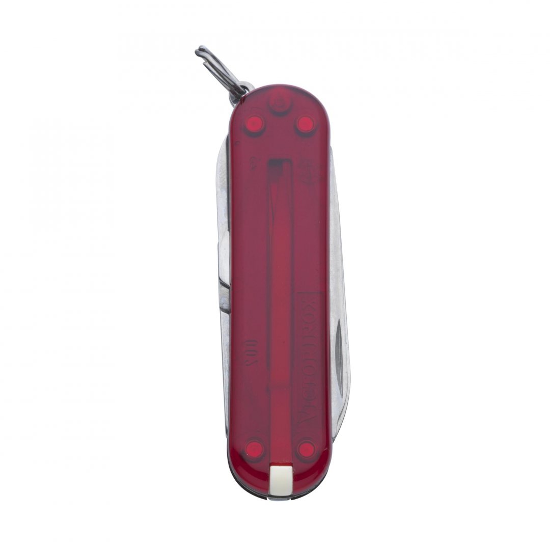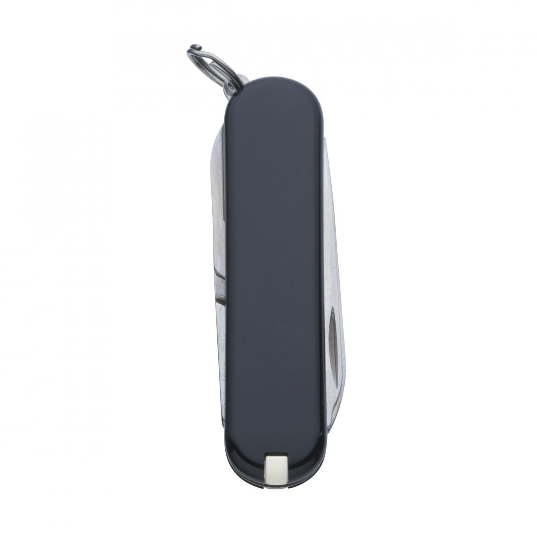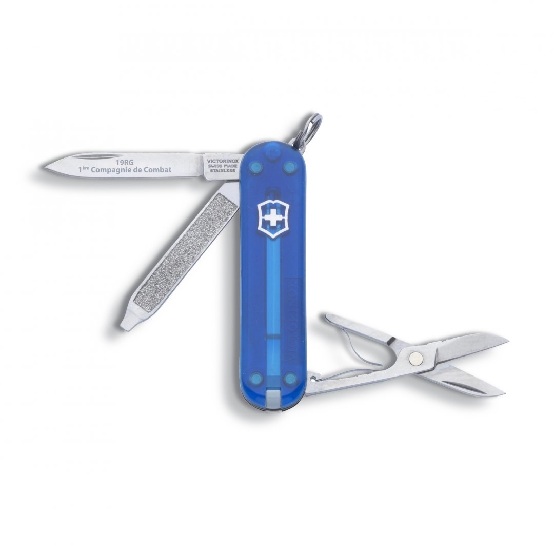 Couteau Suisse original de la marque Victorinox ligne Officiers avec poignée ABS et plaques intermédiaires en aluminium dur anodisé. 5 pièces avec 7 fonctions : couteau, lime et tournevis, ciseaux, anneau, pince à épiler, cure-dents. Inclus étui et mode d'emploi. Garanti à vie. Existe en 6 coloris. Livré sous boîte individuelle cartonnée. Marquage laser compris. Poids : 37 g. Dimensions fermées : 5,8 x 0,9 x 1,7 cm.