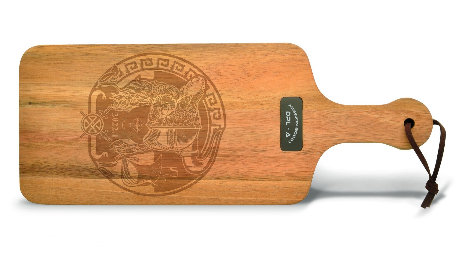En bois d'acacia massif, cette planche à découper au format pratique se dote d'une résistance à rude épreuve. Garantie par un bois naturel reconnu pour sa robustesse. Livrée sous polybag. Marquage laser compris. Poids : 443 g. Dimensions : 38 x 15 x 1,5 cm.
