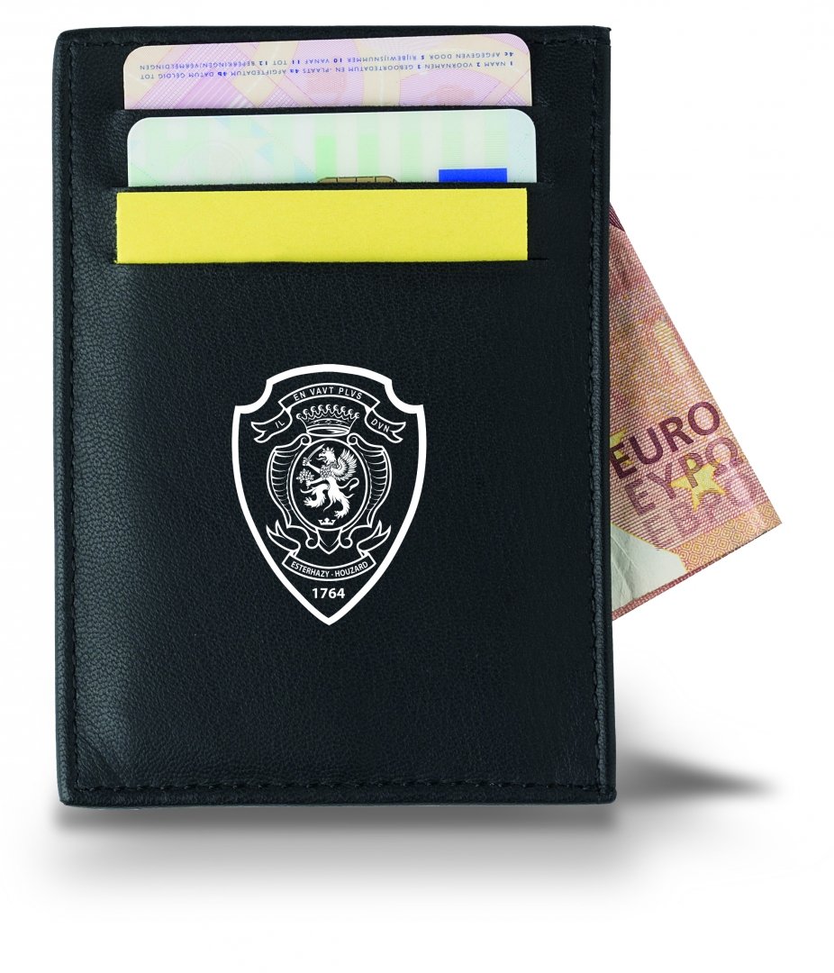 Rangement trois cartes avec protection anti-RFID et emplacement latéral, en croûte de cuir. Livré en sachet transparent individuel. Marquage une couleur compris. Poids : 33 g. Dimensions : 10,4 x 7,3 x 0,3 cm.
