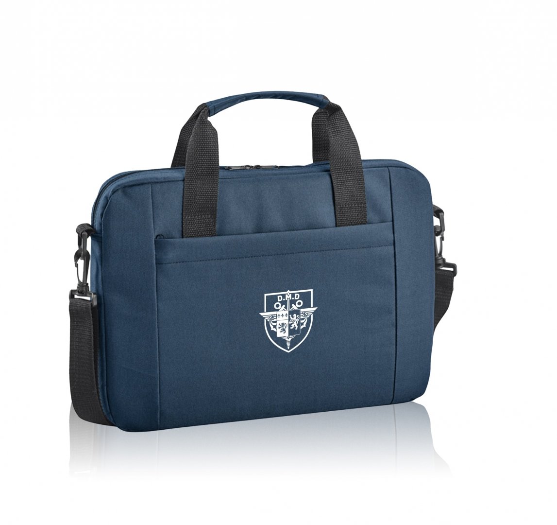 En polyester 600 d. Composé de plusieurs éléments de rangement. Poche plate avant zippée. Livré en sachet individuel. Marquage une couleur compris. Poids : 720 g. Dimensions : 35 x 26 x 3 mm.
