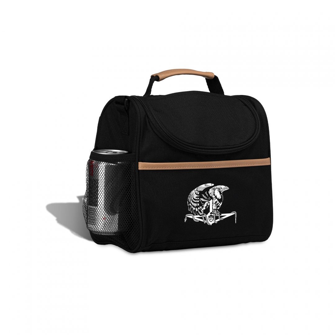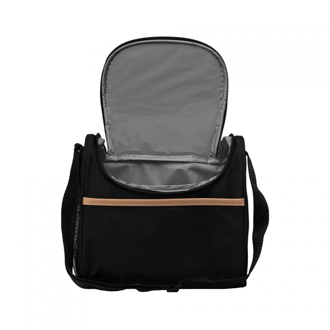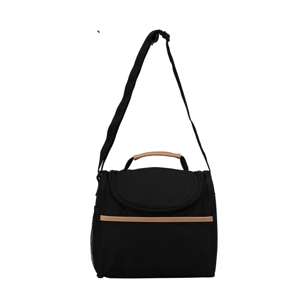 En RPET 600 d. Compartiment principal spacieux : La doublure isolée en PEVA maintient vos aliments et vos boissons à la température idéale. Poches avant et supérieure. Capacité 7 l. Bandoulière réglable. Marquage une couleur compris. Poids : 195 g. Dimensions : 22 x 24,5 x 14,5 cm.