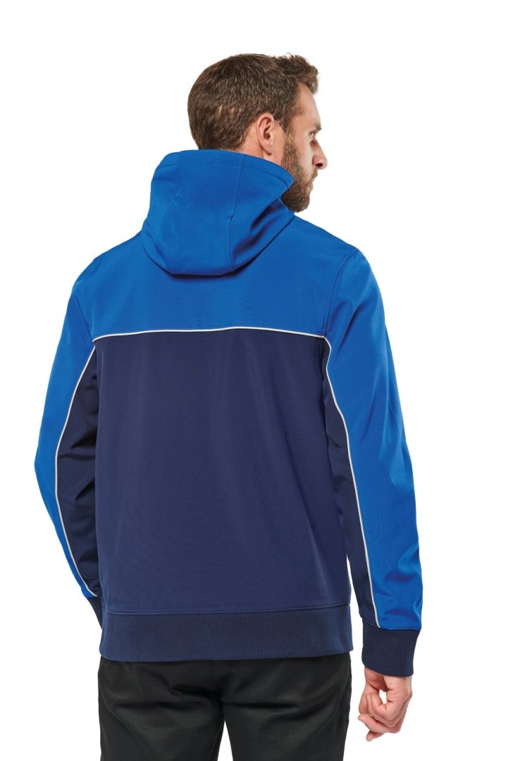96 % polyester / 4 % élasthanne. Tissu contrecollé 3 couches respirant 3000 g/m² /24 h et imperméable 5000 mm. Intermédiaire : membrane respirante et imperméable. Couche intérieure : micro polaire. Fermeture plastique zippée avec tire-zip ton sur ton. 2 poches zippées avec tire-zip sur le devant. Capuche 3 parties réglable. Bande de propreté intérieur col contrasté avec lien d'accrochage. Bord-côte 2 x 2 doublé avec élasthanne au bas de manches et de vêtement. Existe en 6 coloris. Poids : 300 g/m². Dimensions : Taille(s) : S à 3XL.
