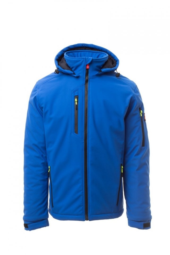 78 % nylon / 22 % élasathanne. Fermeture par zip SBS avec curseur en métal à verrouillage semi-automatique. Capuche amovible, avec coulisse réglable. Col intérieur avec détails latéraux en fibre polaire. Bandes rétroréfléchissantes au bas du dos et à l'arrière de la capuche. Poignets élastiques, réglables par velcro. Deux poches latérales avec zip, une poche poitrine avec zip enduit et une poche sur le bras gauche avec porte-stylos intégré, fermée par zip. Tirettes fluorescentes. Une poche passepoilée intérieure. Bas réglable avec stoppeurs. Existe en 7 coloris. Marquage une couleur, une position compris. Poids : 330 g/m². Tailles : XXS à 5XL.