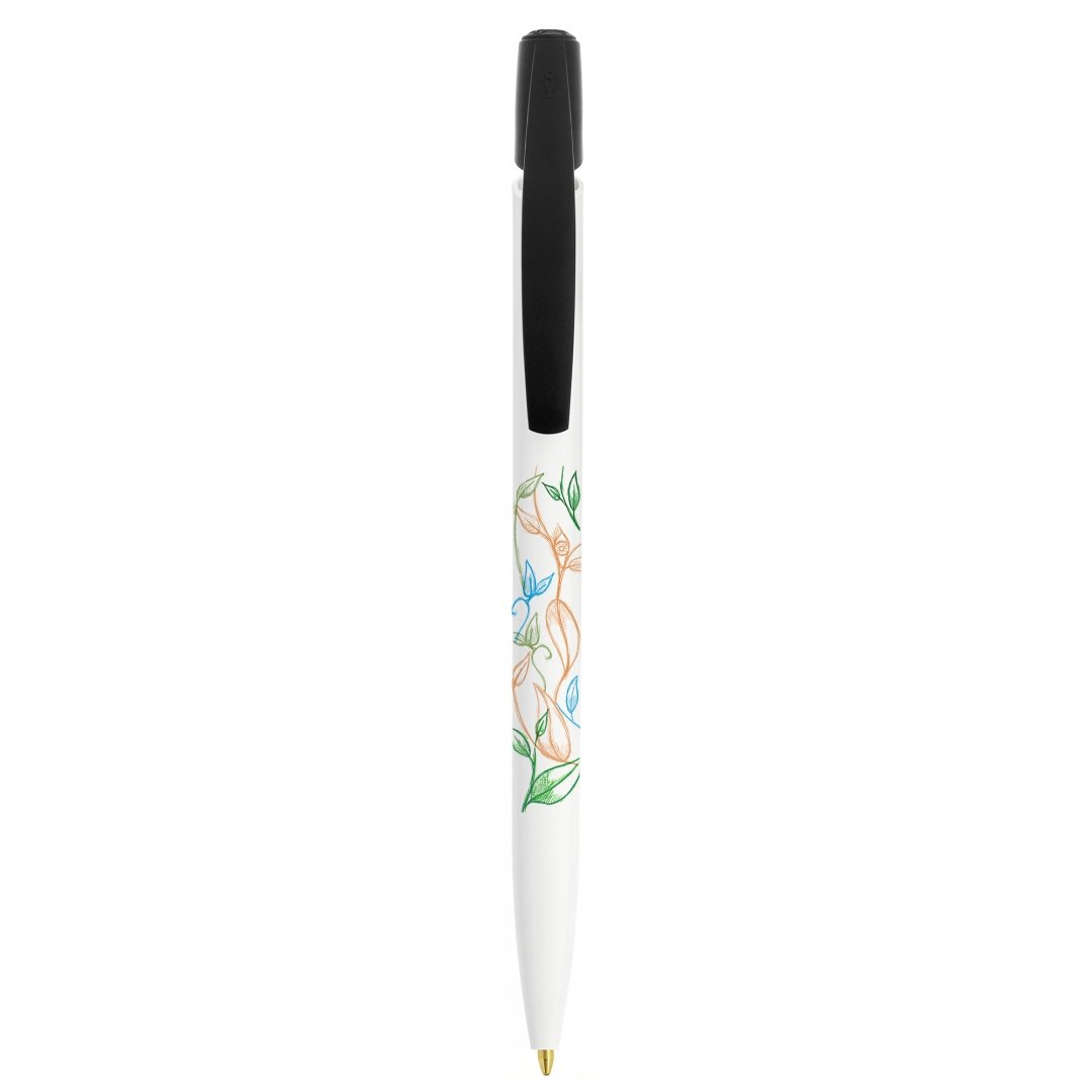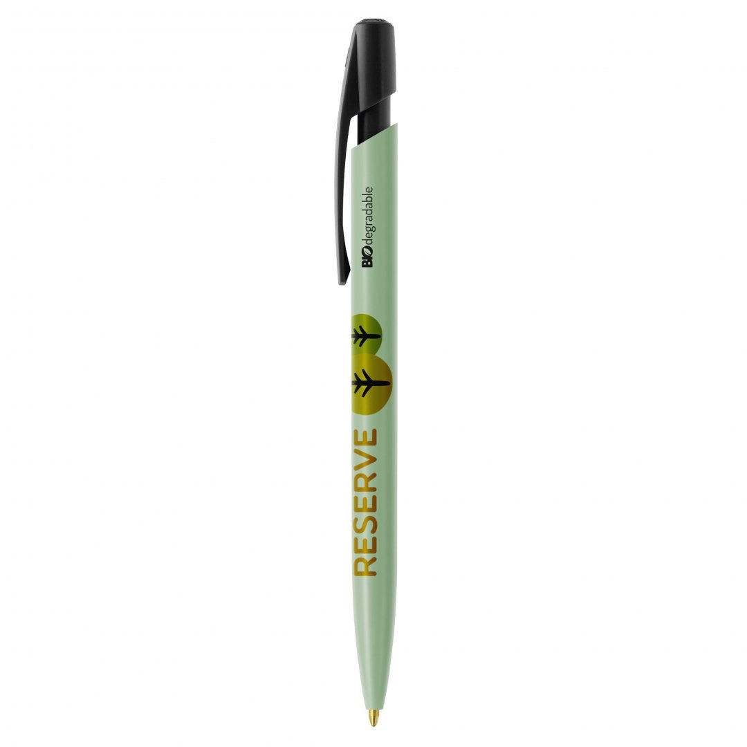 Corps 100 % biodégradable et clip 100 % recyclable. Le corps est fabriqué à partir de 70 % de matériaux biosourcés. Les colorants sont 100 % biosourcés. Encre noire ou bleue. Marquage une couleur compris. Poids : 8 g. Dimensions : 14,7 x ø 0,9 cm.