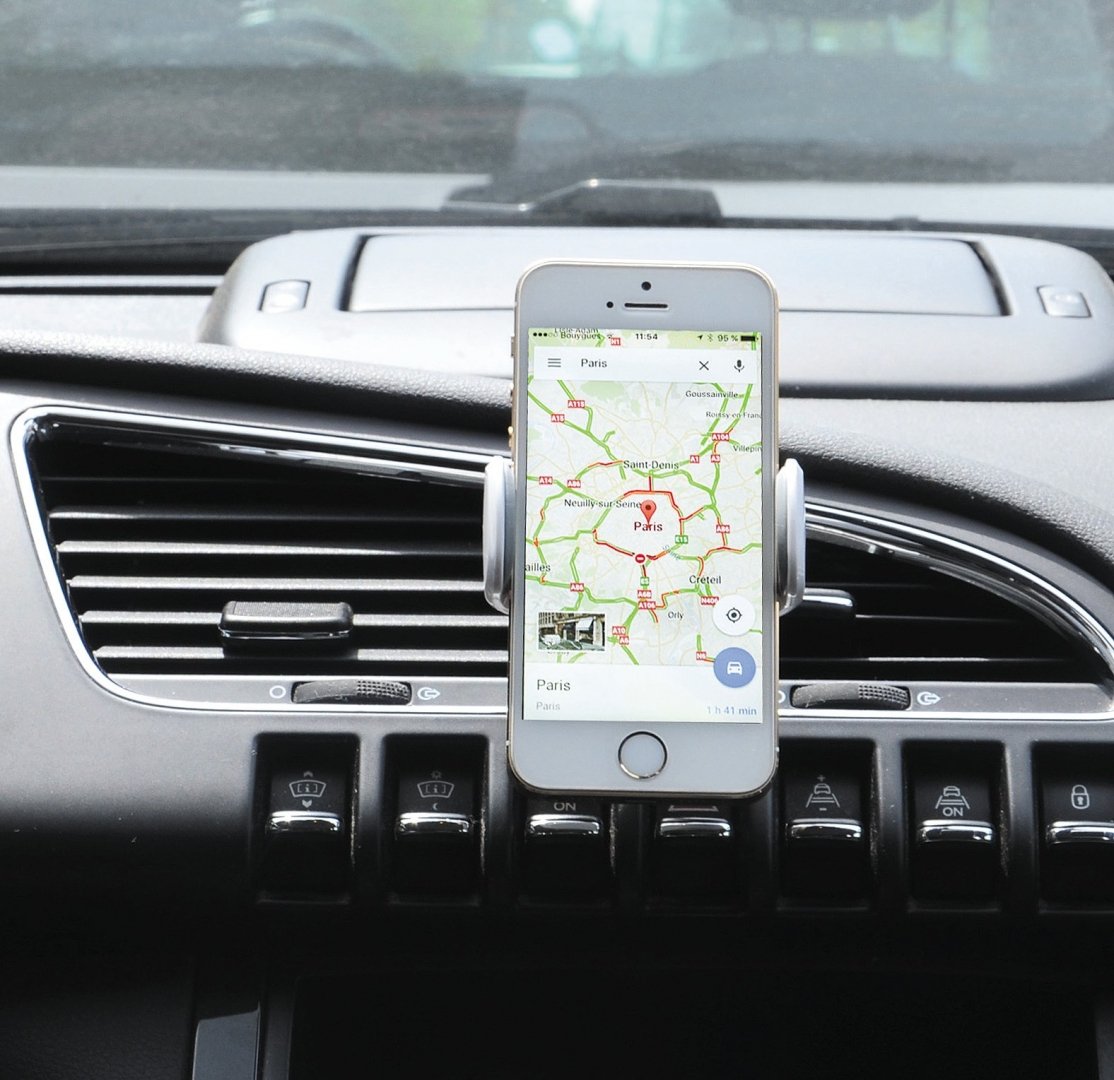 Avec pince universelle se positionnant sur la grille d'aération de tout type de véhicule, en ABS finition brillante avec caoutchoucs antidérapants latéraux. Livré en boîte cartonnée. Marquage une couleur compris. Poids : 40 g. Dimensions : 6,5 x 6,7 x 3 cm.