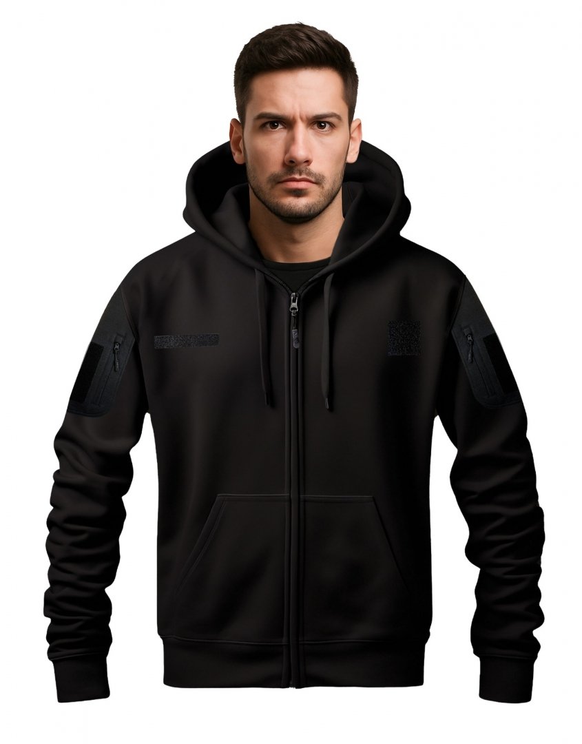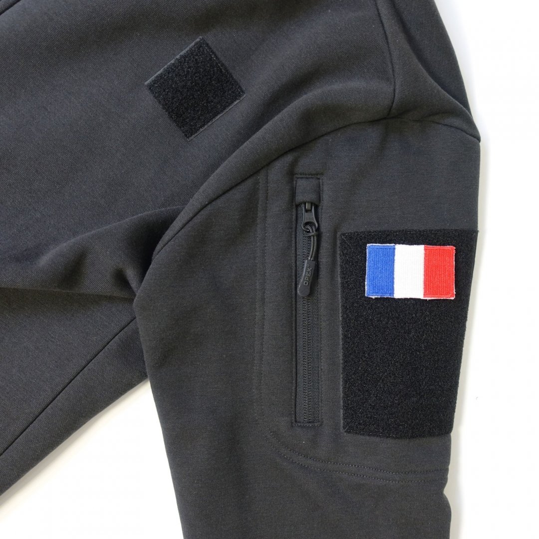 60 % coton et 40 % polyester, fermeture zip centrale SBS robuste et durable. Poche kangourou devant, 2 poches zippées sur les manches. Bandes auto- agrippantes sur le devant une bande carrée 5 x 5 cm et un bande rectangulaire 12 x 2.50 cm sur chaque manche un bande rectangulaire de 13 x 10 cm. Existe en 3 coloris. Marquage une couleur, une position compris. Densité : 325 g/m². Tailles : S à 2XL.
