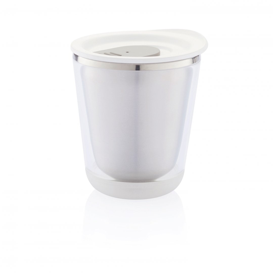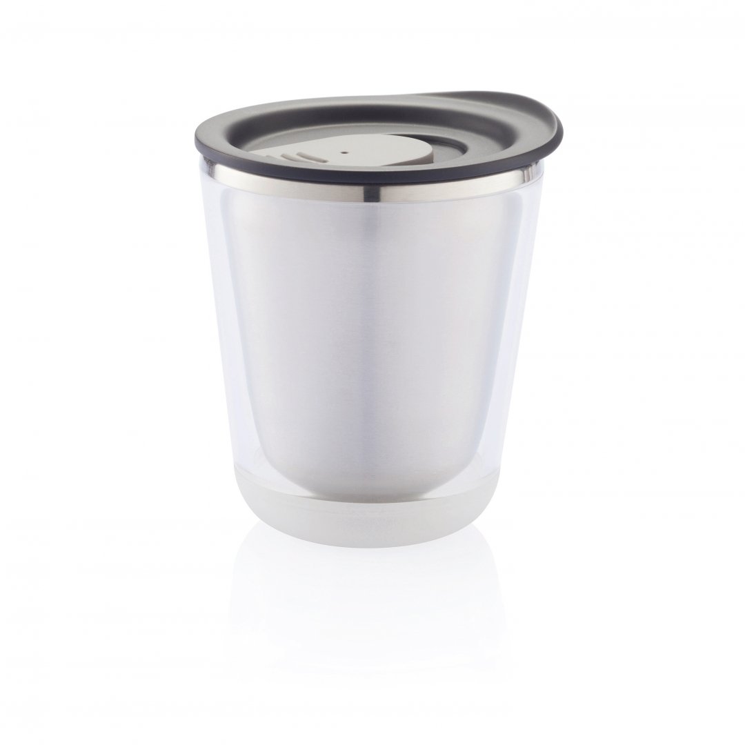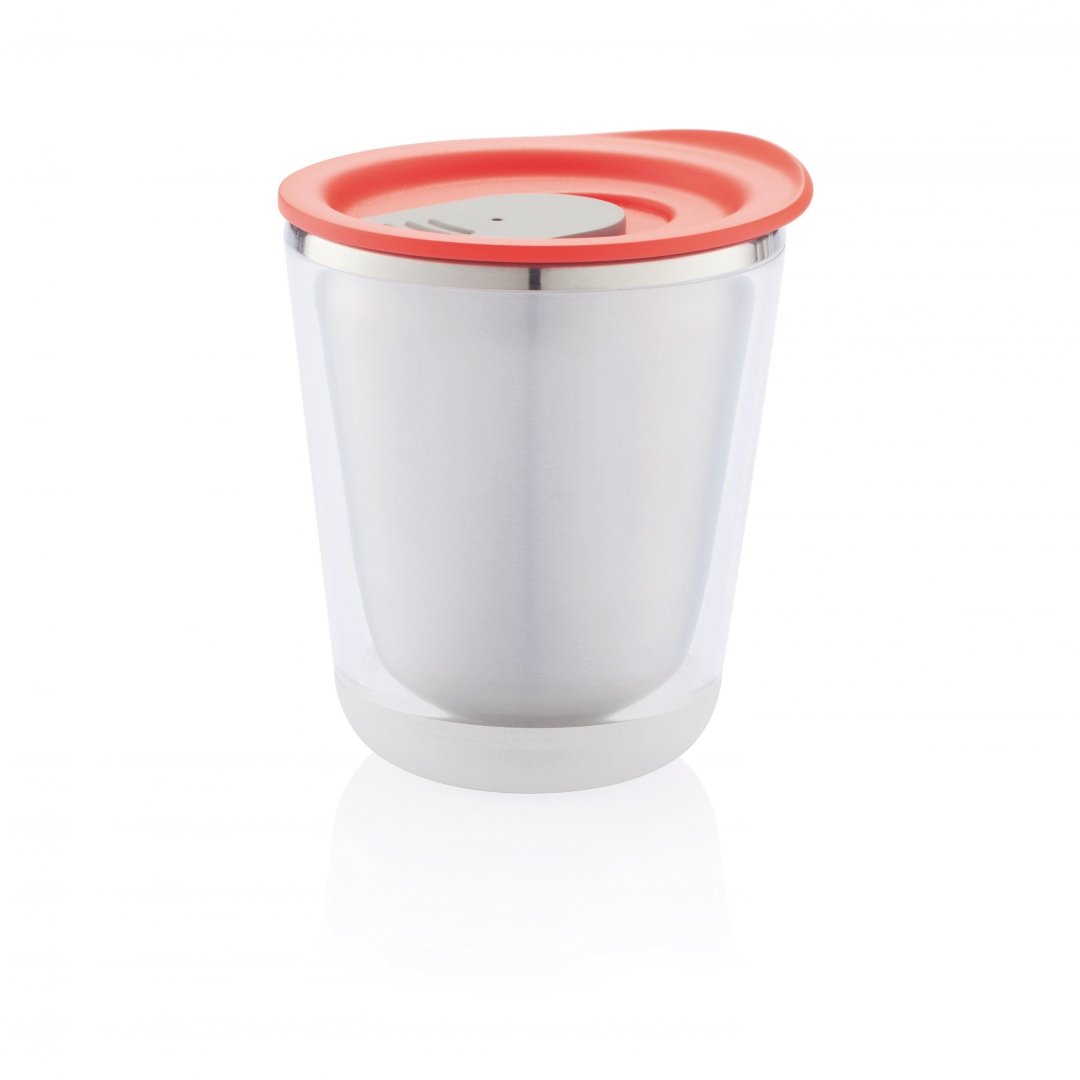 Double paroi en acier inoxydable à l'intérieur, son design permet de le démonter complètement pour le recycler. Modèle déposé®. Contenance : 227 ml. Existe en 5 coloris. Livrée en boîte cartonnée. Marquage une couleur compris. Poids : 150 g. Dimensions : Ø 8,5 x 10,2 cm.