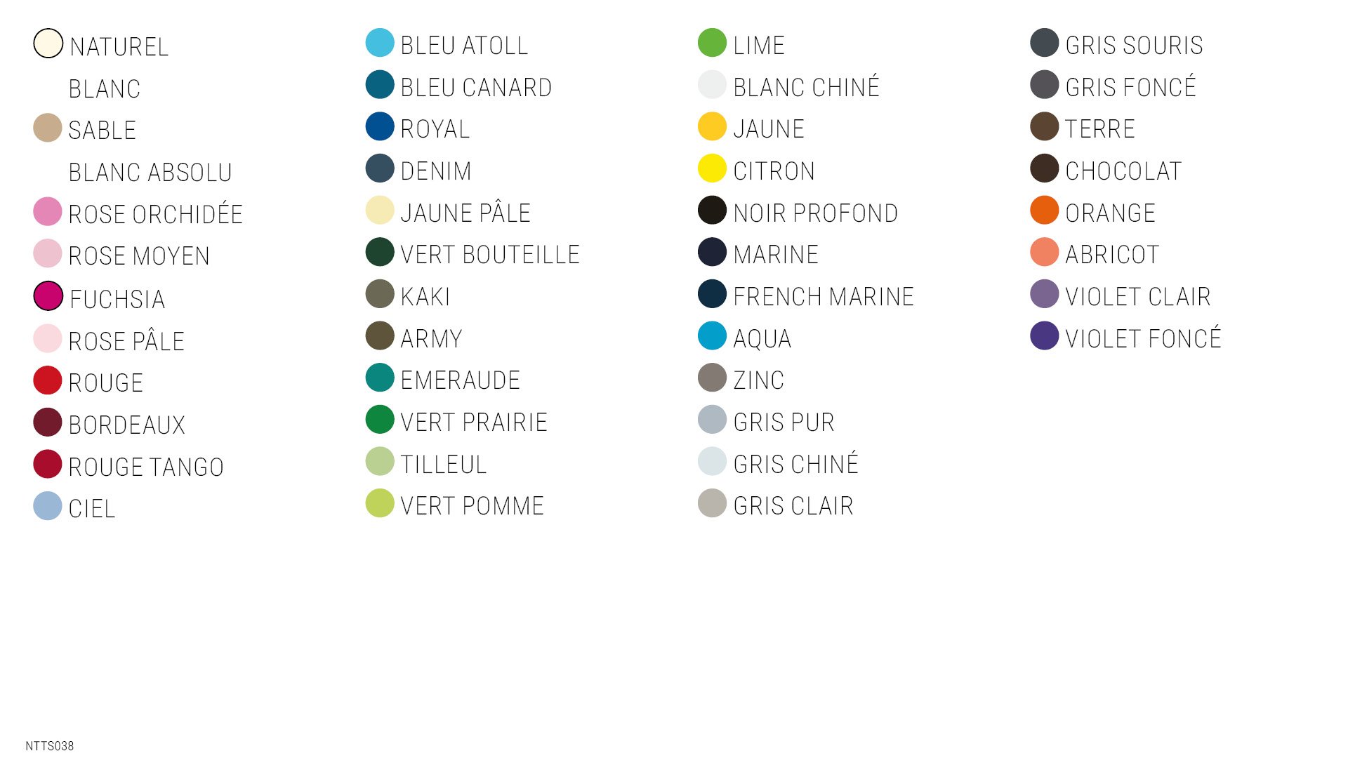 Jersey, 100 % coton semi-peigné pré-rétréci. Bande de propreté au col. Col avec bord-côte élasthanne. Existe en 44 coloris. Marquage une couleur, une position compris. Densité : 150 g/m². Tailles : 2XS à 3XL.