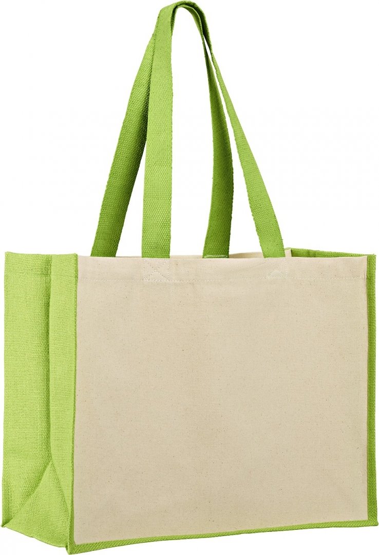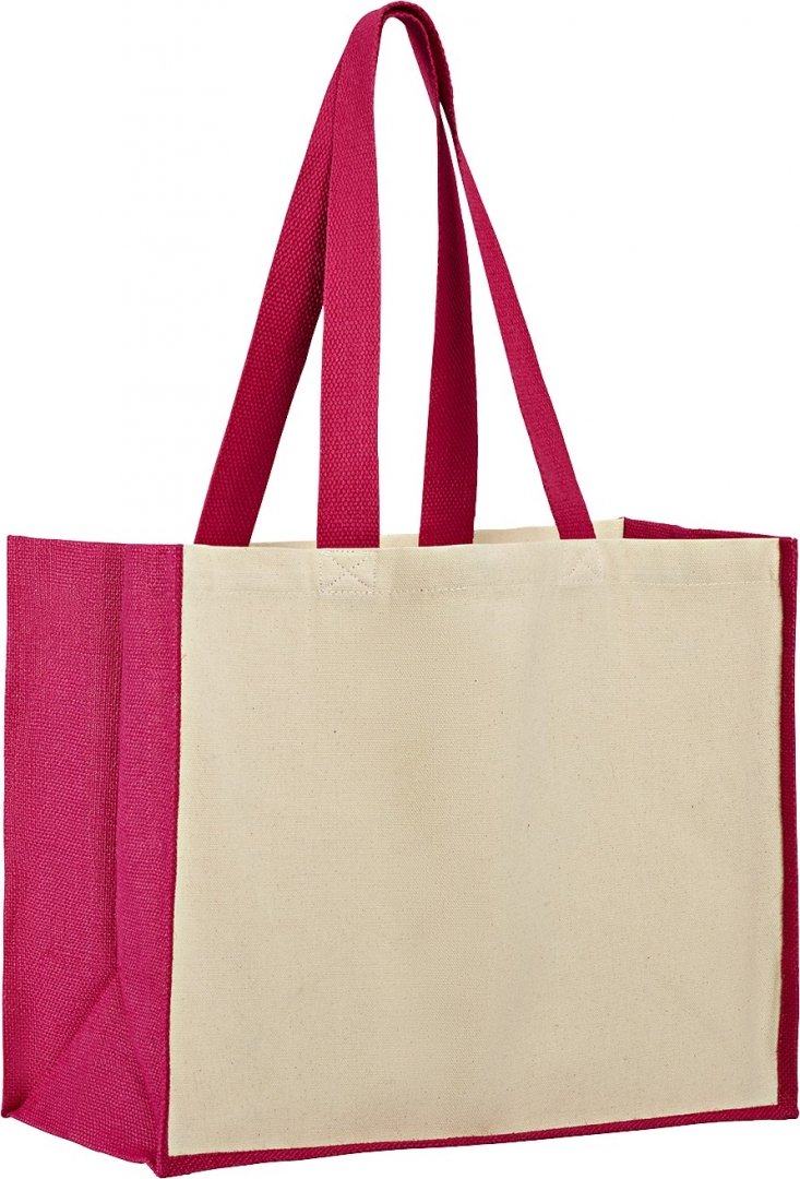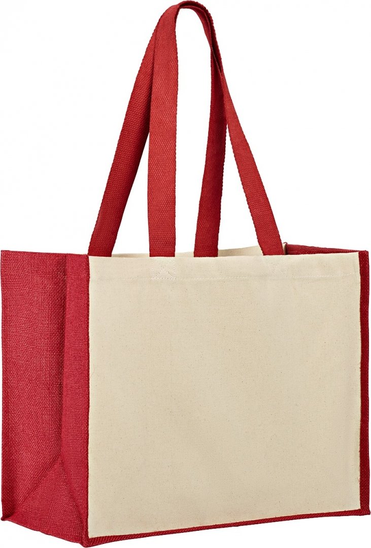 100 % toile de jute avec lamination intérieure PP. Anses : Sangles plates tressées, en coton. Dimensions des anses : 61 x 3 cm. Capacité 25 l. Existe en 6 coloris. Marquage une couleur compris. Poids : 320 g. Dimensions : 42 x 33 x 20 cm.