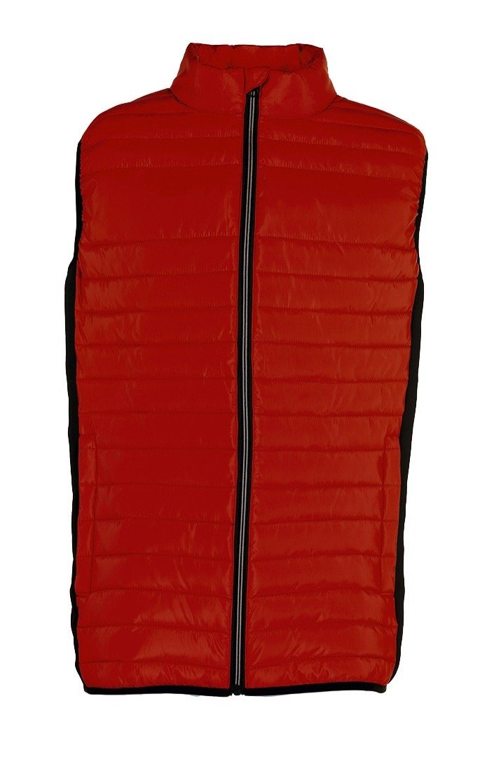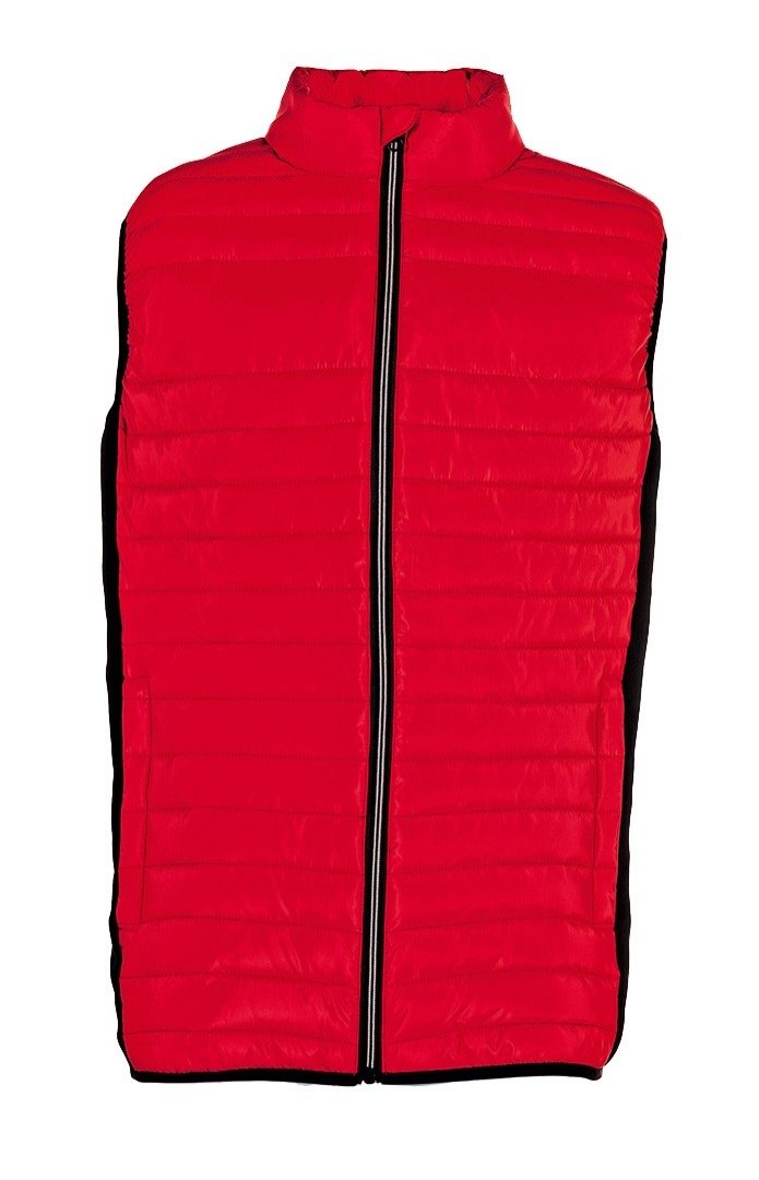 Bi-matière. 2 poches latérales zippées. Protège-menton. Zips contrastés. Corps : polyester 300T matelassé. Côtés : 96 % polyester/4 % élasthanne. Existe en 17 coloris. Broderie coeur comprise. Densité : 210 g/². Tailles : S à 3XL.